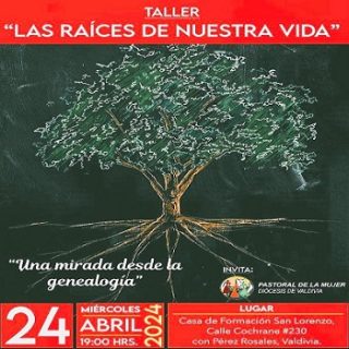 El Equipo diocesano de la Pastoral de a Mujer invita muy cordialmente para este miércoles 24 de abril a las 19 hrs., al taller “Las raíces de nuestra fe” a efectuarse en nuestra Casa de Formación San Lorenzo (Cochrane 210). El taller de carácter gratuito, se centrará en redescubrir a...