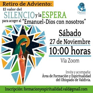 “el Adviento es el tiempo para hacer memoria de la cercanía de Dios, que ha descendido hasta nosotros”. (Papa Francisco). Hermanos (as), les invitamos cordialmente al retiro espiritual organizado por el Área de Formación y Espiritualidad del Obispado de Valdivia. La actividad es el sábado 27 de noviembre de 10...